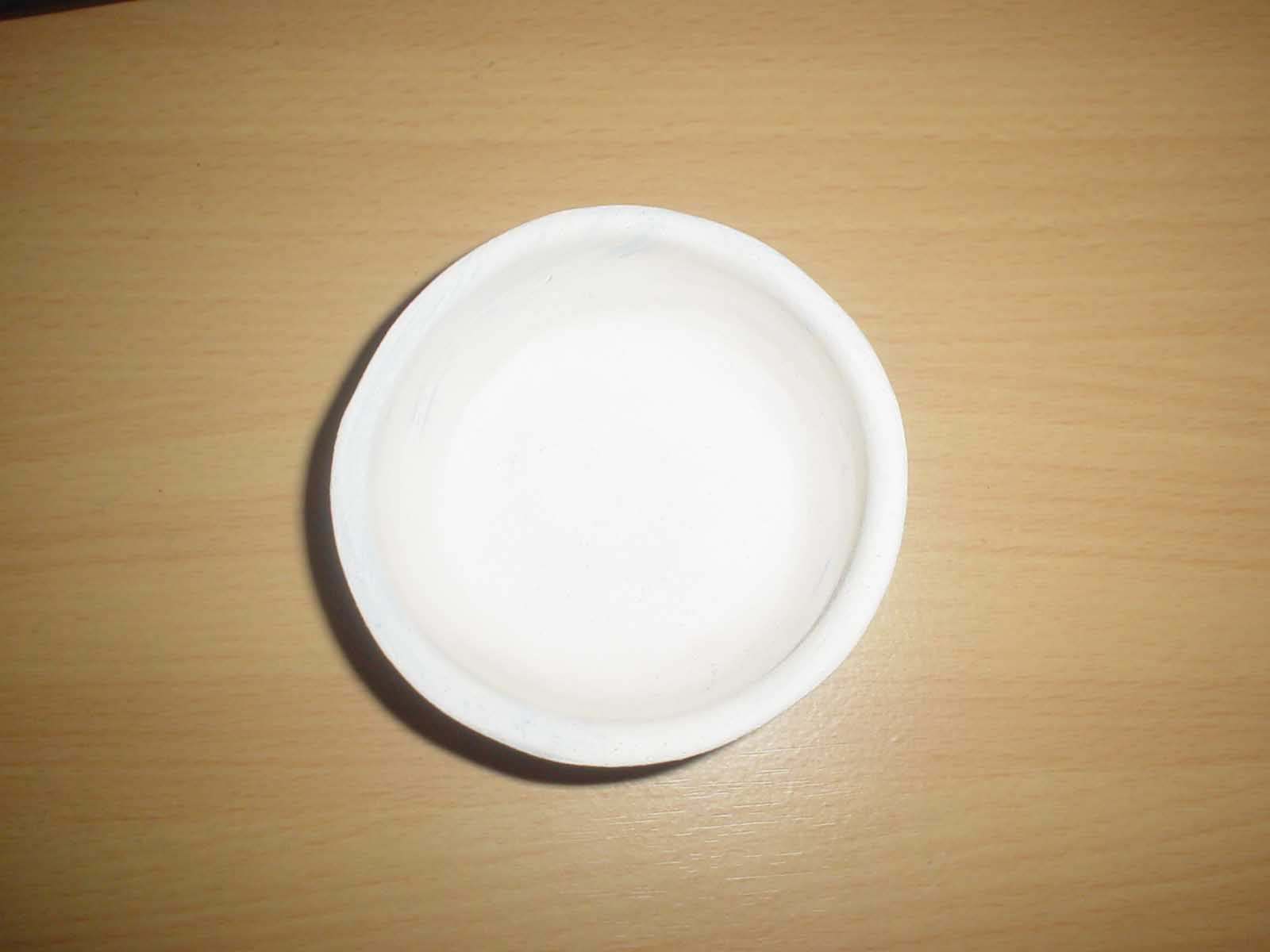 A small floral pot, intended primarily for storage of jewellery or other small items is the piece shown from the two angles below. Created from buff-smooth clay and only 8cm in diameter, this delicate piece has also been decorated with scraffiti around the outer edge using a ceramic tool.