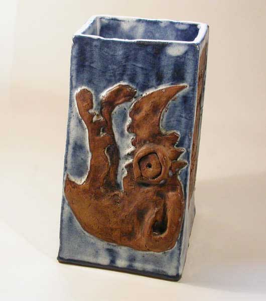 One of Gemma's best creations, the 'dragonhead pot' was made from stoneware clay and inspired by the classic Chinese symbols of the dragon's head. Measuring about 40cm in height, the decorations were completed with the addition of a number of well-wishing messages written in Chinese and etched into the clay using a sharpened ceramic hand tool.